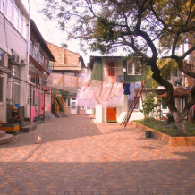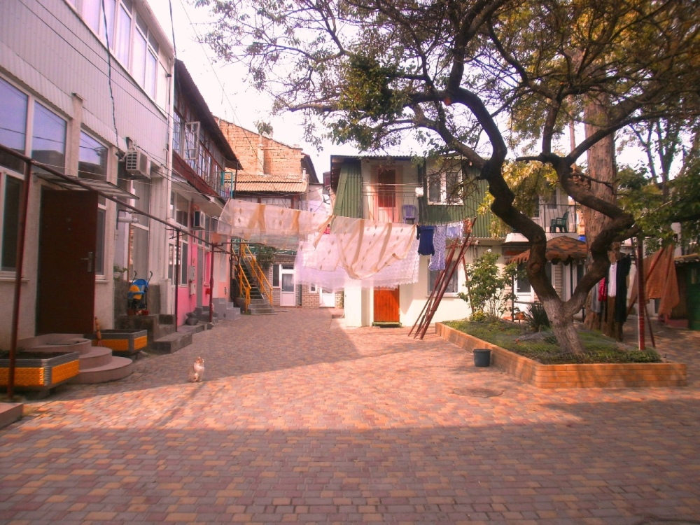 Море 250 метров (3-4 минуты пешком) песчаные пляжи и все развлечения (кафе, рестораны, аттракционы, уличная торговля и развлекухи) на набережной Горького. Двор общий, мангальной зоны нет.