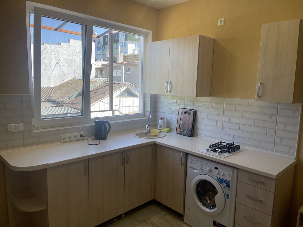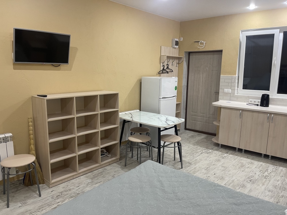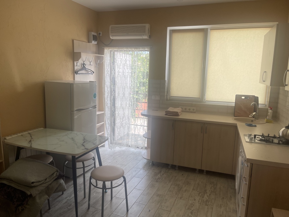 Сдается уютная квартира-студия в Евпатории. В 3 минутах ходьбы находится Евпаторийский дельфинарий, в 5 минутах ходьбы - парк Фрунзе, в 7 минутах ходьбы - пляж.
