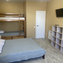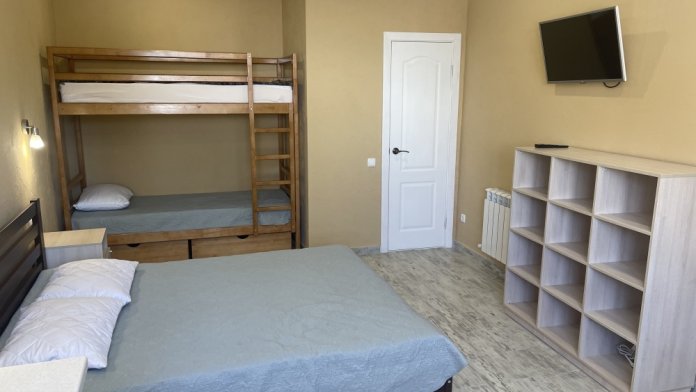 Двуспальная кровать, двухъярусная кровать, телевизор, Wi-Fi, кондиционер, полностью оборудованная кухня: плита, чайник, холодильник, вся необходимая посуда и принадлежности. Стиральная машина, чистое постельное бельё.