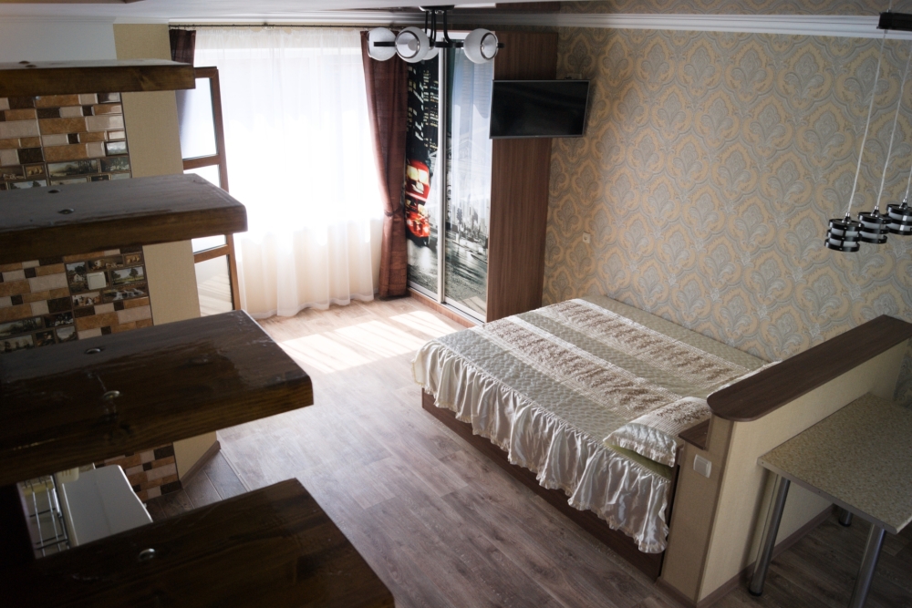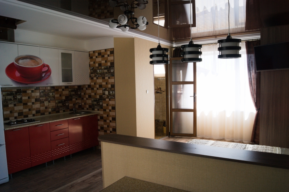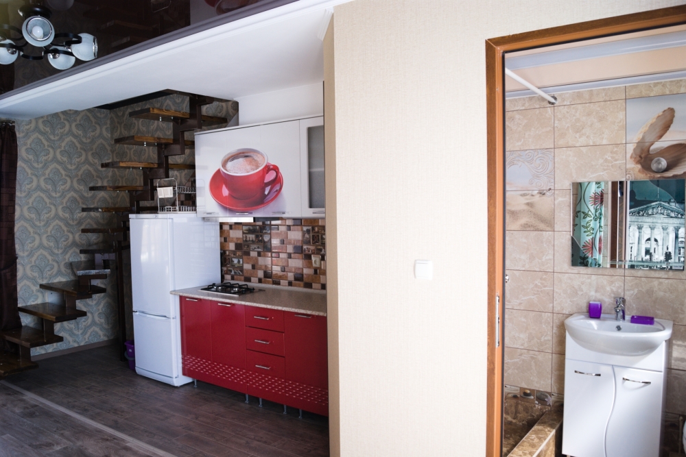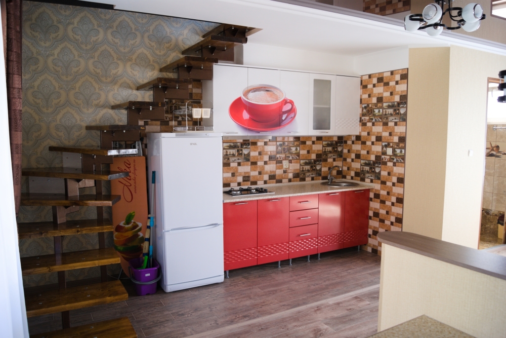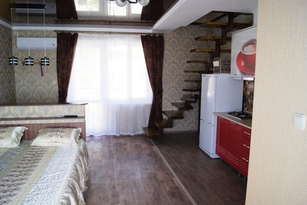 Таунхаус — это двухуровневый, двухкомнатный номер люкс с панорамным видом на море!!! Включающий в себя большой балкон при входе на нижнем уровне и огромную лоджию с панорамным видом на море!!! на верхнем ярусе. таунхаус рассчитан вместимостью от одного человека до четырех и можно одно дополнительное место ( 4+1)! Месторасположение Таунхауса на пересечении ул. Голицына 16 и ул. Шаляпина 16 ( вход и балкон, находятся на ул. Шаляпина 16, а верхний этаж и лоджия с панорамным видом на море!!! выходит на ул. Голицына 16. ), спальных мест для пяти человек достаточно ( на нижнем ярусе балкон, комната студия в которой есть красивая кухня, встроенная газ.плита, встроенная вытяжка, душ и туалет, обеденная зона. стол со стульями, шкаф купе, ЖК телевизор 80 см диагональ, двухкамерный холодильник и двуспальная кровать, на верхнем ярусе красивая комната с панорамным видом на море!!! в которой стоит двуспальная кровать и раздвижная не большая тахта, есть комод, две прикроватные тумбы, большое зеркало и ЖК телевизор 80 см диагональ и большая лоджия с панорамным видом на море!!! на которой стоит обедненная зона, стол с креслами. В каждой комнате, есть своя сплит- система! Работает WI-FI. Это расположено на третьем этаже, отдельный вход ( вариант таунхауса). Таунхаус по площади 60 м², лоджия или терраса, которая на верхнем ярусе с панорамным видом на море 15 м². Пол на террасе- керамогранит, на нем стоит большой обеденный стол, пластиковые кресла и еще стоит «Кресло Кокон»! Дополнительное место платное!!!