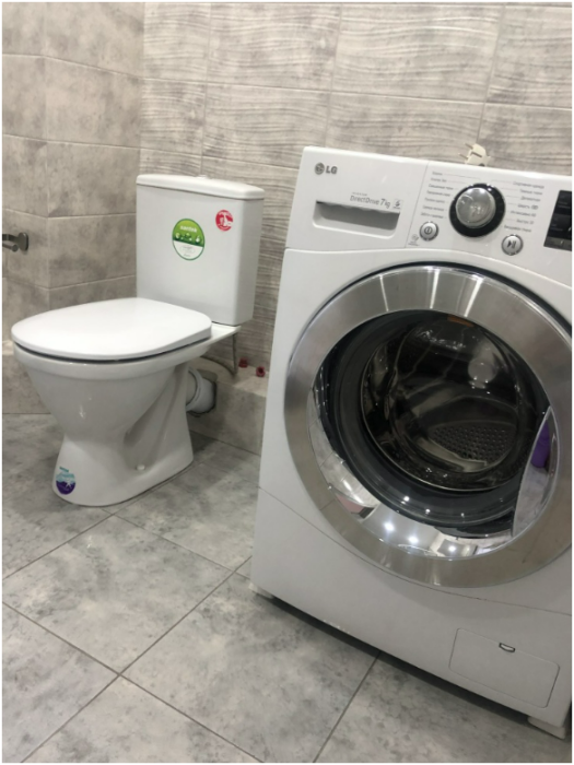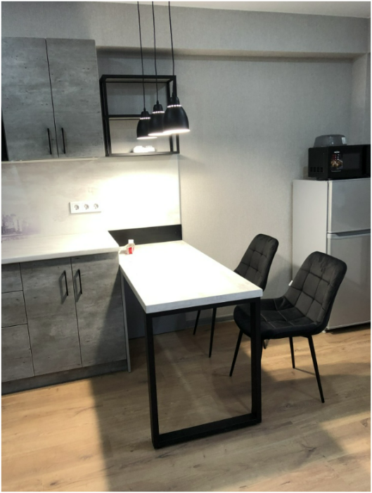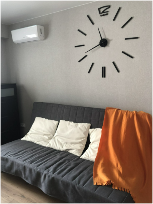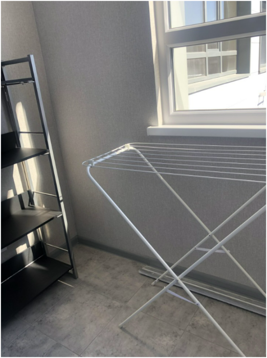Кондиционер, микроволновая печь, варочная поверхность, чайник, холодильник, телевизор, стиральная машина-автомат, гладильная доска, сушилка для белья.