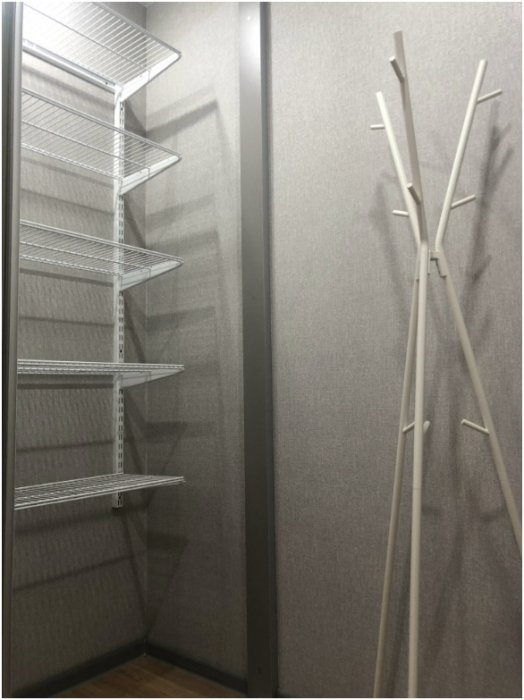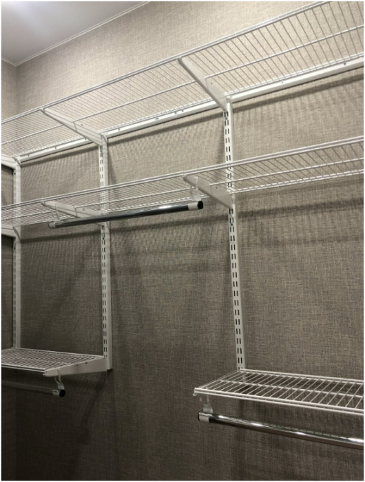 Есть гардеробная с современной системой хранения.