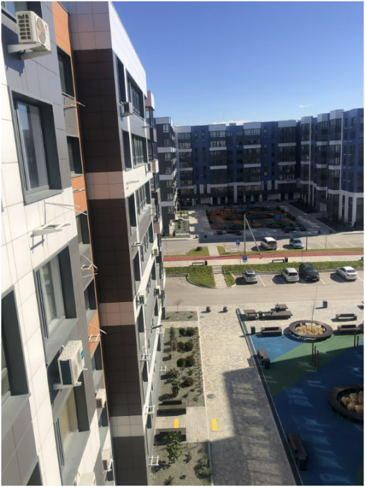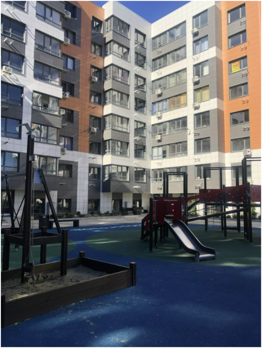 Это современный жилой комплекс с видеонаблюдением по периметру, принципом «двор без машин», освещением с датчиками движения, удобными парковками, спортивными площадками и прогулочными зонами. Очень удобно для путешествующих на автомобиле, так как есть парковка возле подъезда с видеонаблюением.