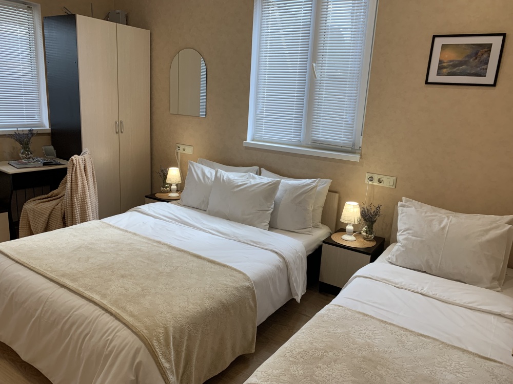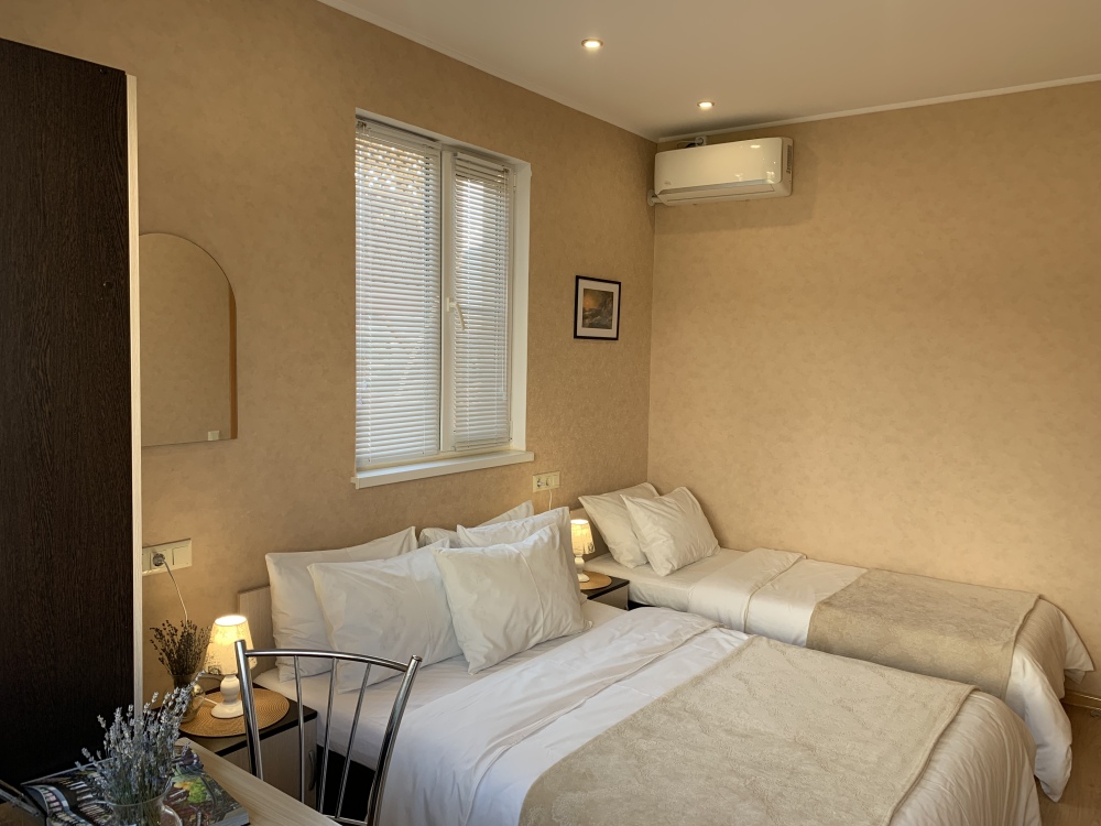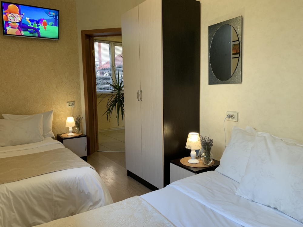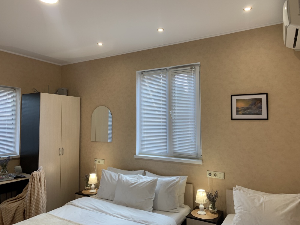 ️- Сплит-система и телевизор в каждой спальне, также в спальнях шкаф, прикроватные тумбочки, настольные лампы, потолочные светильники, столики, зеркала.