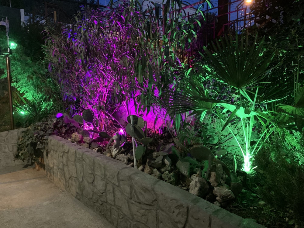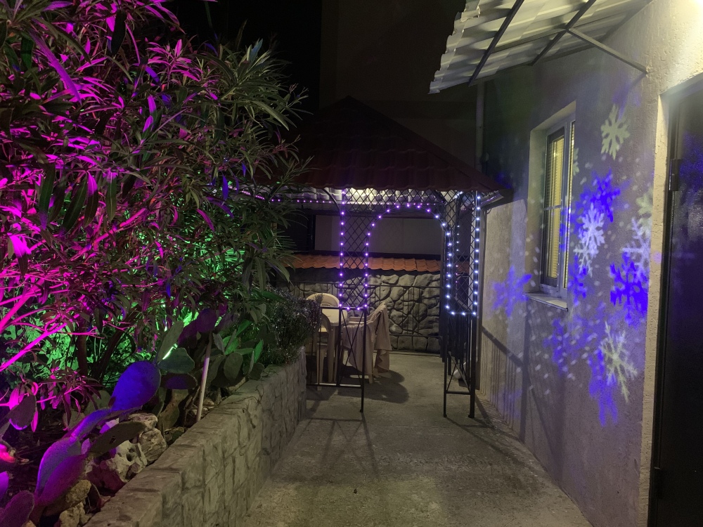 -В ночное время, для Вашего комфорта, на придомовой территории интеллектуальное освещение. Наших гостей порадует и создаст романтическую атмосферу ландшафтная подсветка.