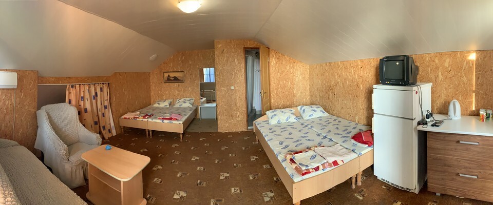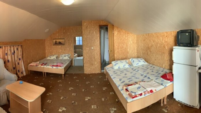 Наша гостиница представляет собой два четырехэтажных здания современной постройки с уютными номерами, в каждом из которых для Вас: удобная мебель, холодильник, кондиционер, телевизор, санузел, эл. чайник. Номерной фонд мини-гостиницы включает в себя 2-х местные, 3-х местные и один 4-х местный (вмещает 6-8 человек) мансардный этаж с отдельным входом и балконом с видом на море.