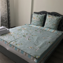 В апартаменте имеются все удобства: новая сантехника, горячая и холодная вода, кондиционер, wi-fi, цифровое тв, а также телевизор с возможностью просмотра смарт-тв. Установлена большая (1,6х2 м) кровать с новым ортопедическим матрасом, на котором действительно удобно спать. Полотенца и постельное белье предоставляем. Окна выходят на солнечную сторону с видом во двор, где нет шума от проезжающих автомобилей и трамвая, шторы black out. Кухня оборудована необходимыми приборами и посудой.