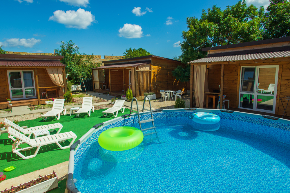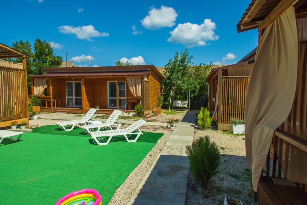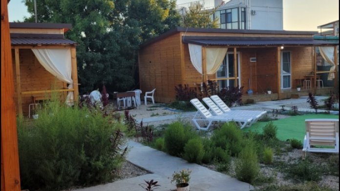 Комплекс домиков «Солнце в доме» 2022 года постройки находится в центре поселка Береговое в 10 минутах ходьбы от знаменитого Золотого пляжа.