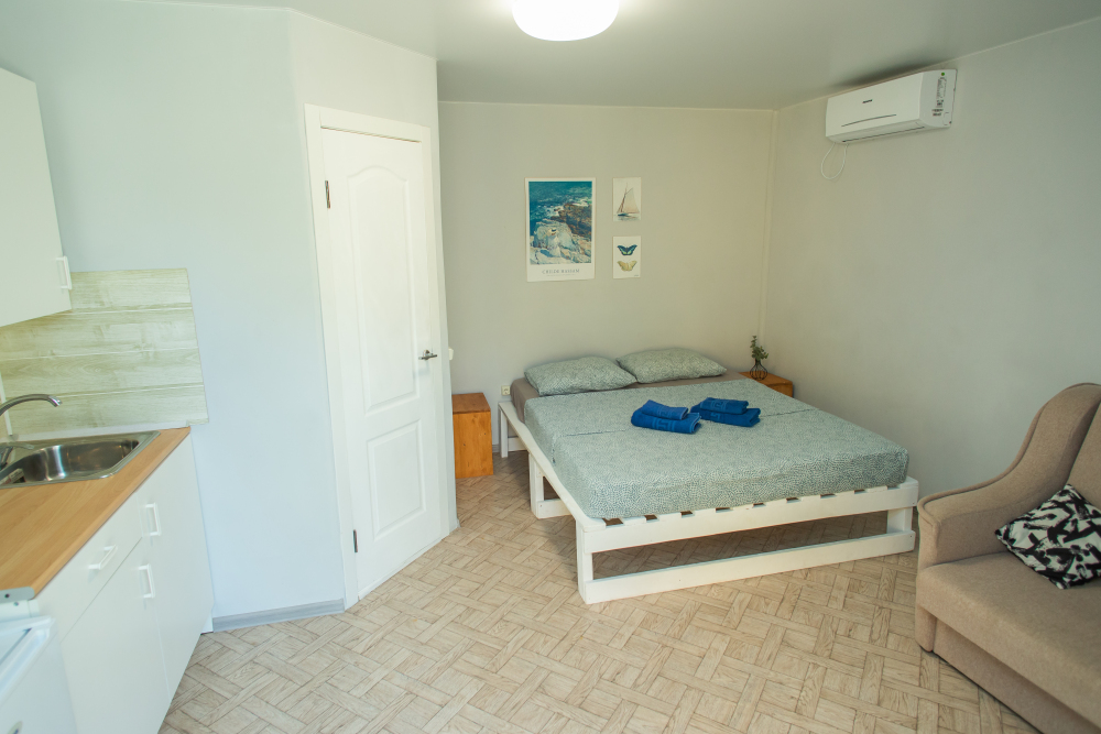 Уютный новый домик с собственной террасой вмещает до 4х гостей.