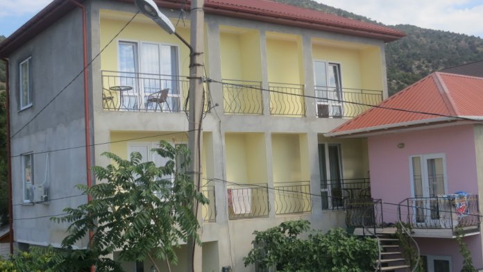 Это уютные современные номера, оборудованные кухней и всем необходимым для комфортного проживания. С балконов коттеджа открывается живописный вид на море. Сидя вечером на балконе за бутылочкой хорошего крымского вина, наблюдая всю прелесть окружающей природы, вы почувствуете незабываемую атмосферу отдыха. Территория гостевого дома невелика, но уют и чистота всегда привлекает гостей на отдыхе. На территории расположены беседка для первого этажа, мангал для любителей шашлыка, много зеленой растительности, радующей глаз.