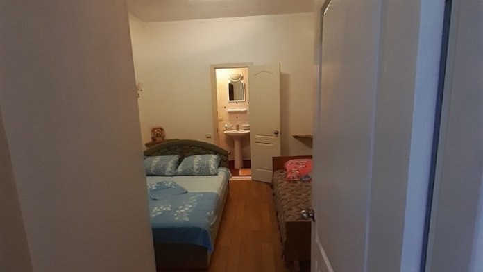 Квартира находитс япо адресу Ленина 6.Заходим-сразу веранда ,этаж 1,два круглы стола, справа и слева скамейки и длинный стол, посуда есть, три двухкомнатных номера на 3 семьи. В левом номере диван, односпальная и двуспальная кровать ,санузел, телевизор ,кухня , холодильник. В правом номере диван кухня холодильник телевизор кровать двуспальная и санузел. То есть: три двухкомнатных отдельных номера, в каждом санузел кондиционер телевизор стиральная машинка, плита, кухня.
