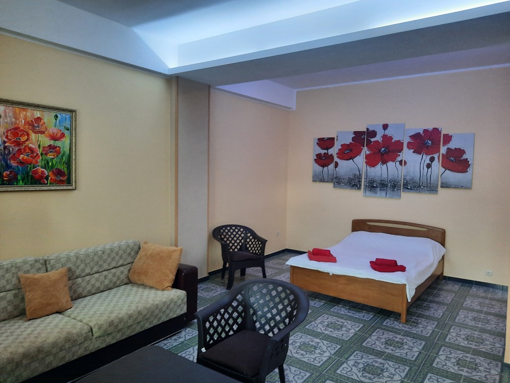 Все номера укомплектованы телевизором со спутниковыми каналами, кондиционером и холодильником. В некоторых номерах обустроена гостиная зона. Из ряда номеров открывается вид на горы или город. Производится ежедневная уборка номеров.