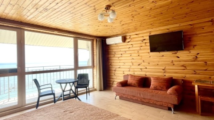 Просторные апартаменты с кухней, дизайн выполнен в морской тематике. Комната позволяют комфортно разместить 4 человека. Номер расположен на 1 этаже с входом на пляж.