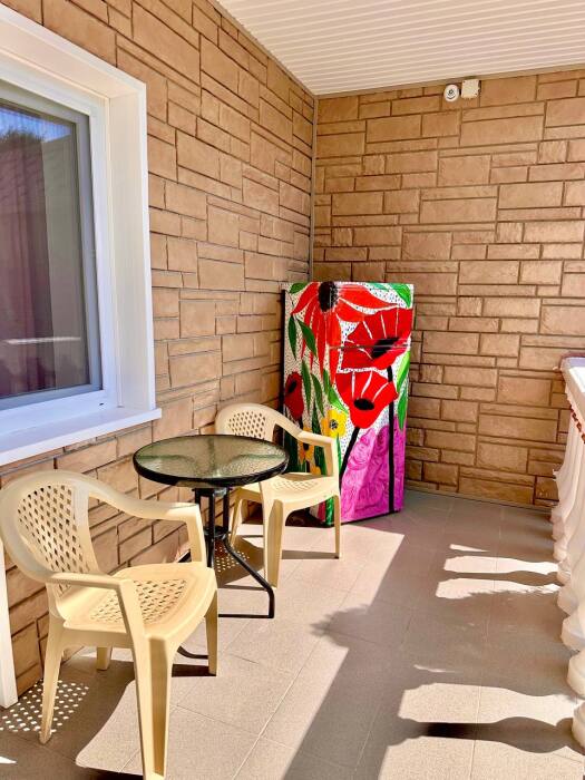 Техника: жк-телевизор, сплит-система, холодильник, фен. С выходом на уютную террасу, оснащенную мебелью, где можно уютно расположиться за чашкой чая.