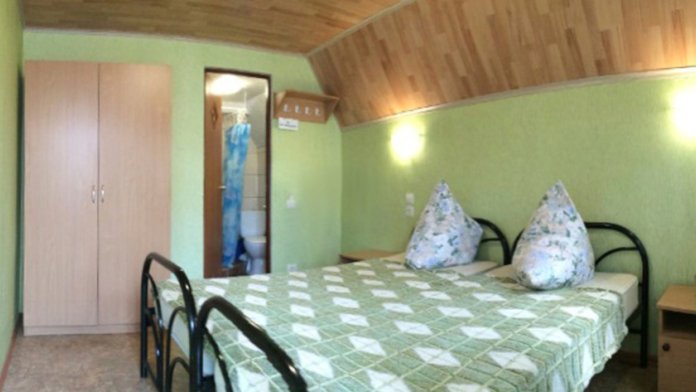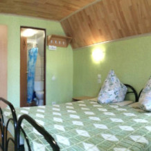 Семейные двухкомнатные номера в отдельных домиках. Кухонный уголок: эл. плита одноконфорочная, микроволновка, посуда, кухонные принадлежности.