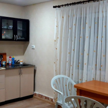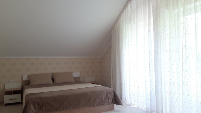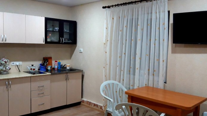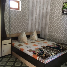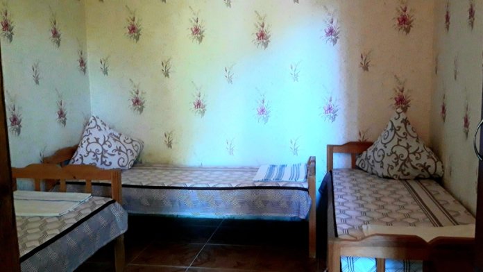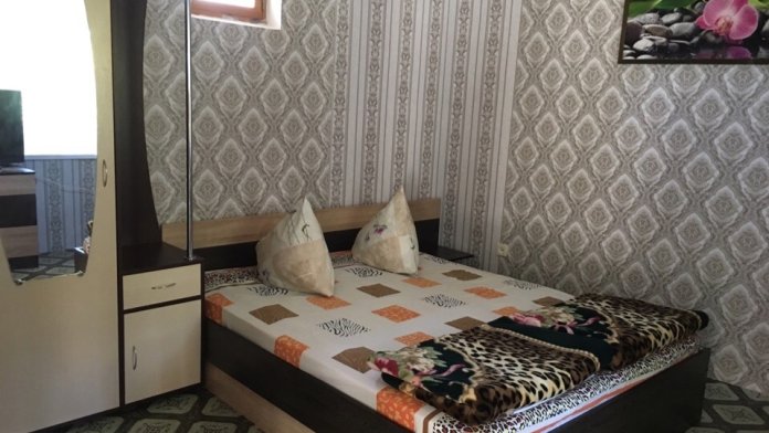 Номер стандарт.В номере одна двуспальная кровать и кресло-кровать,телевизор, шкаф. Так же в номере находится совмещённый санузел, горячая/холодная вода круглосуточно, Кухня общая на 2 номера, имеется всё необходимое для приготовления пищи. До центрального песчаного пляжа 5 минут прогулочным шагом.Гостевой дом находится в центре посёлка. Рядом вся необходимая инфраструктура.