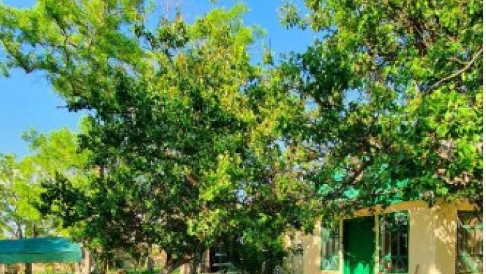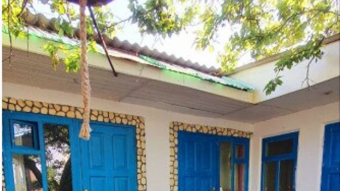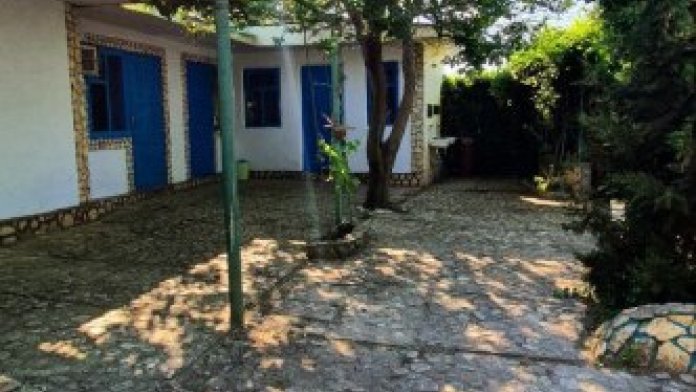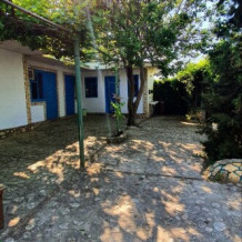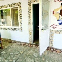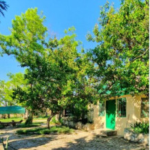 Из окон открывается вид на просторный двор с зелеными насаждениями. Рядом кухня общего пользования, рассчитана на 2-3 номера. Там же большой холодильник, микроволновая печь, чайник, кухонные принадлежности, стиральная машина. Рядом беседка, мангальная зона.