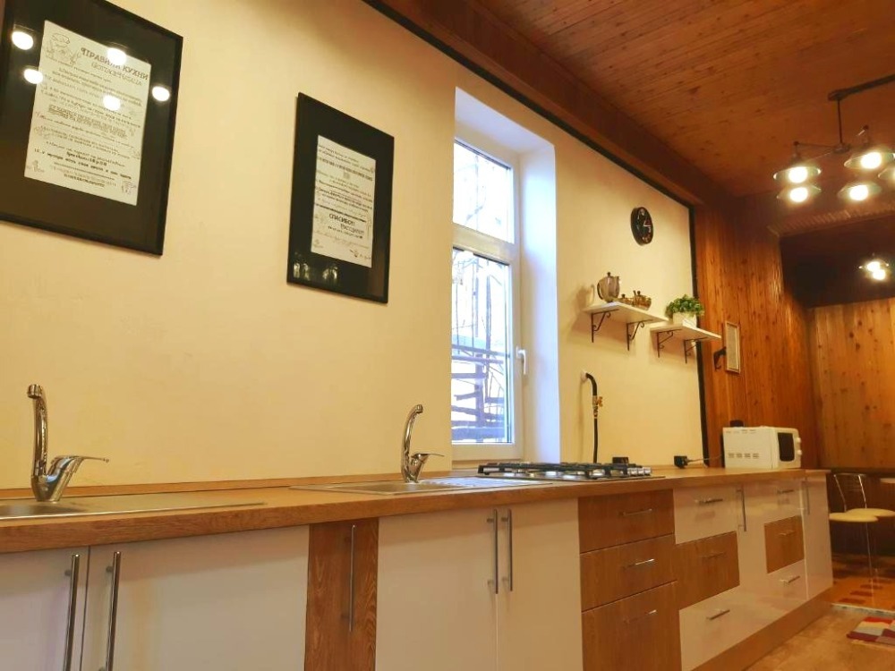 На общей кухне имеется вся необходимая посуда. Гладильные принадлежности бесплатно.
