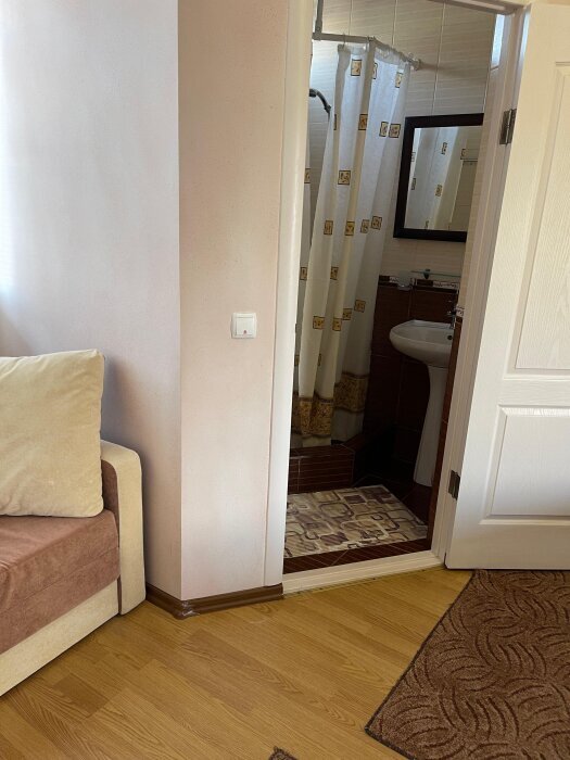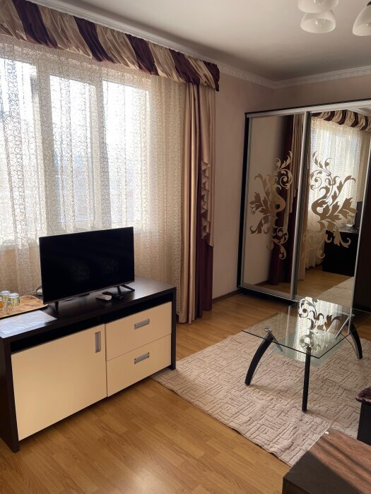 Есть свой балкон, стол со стульями и сушилка для вещей.