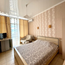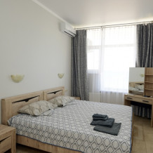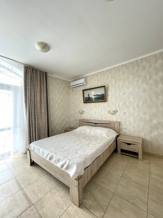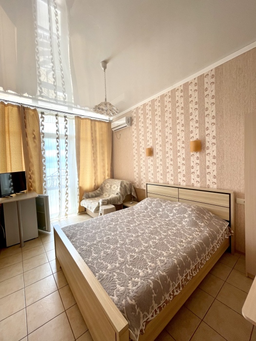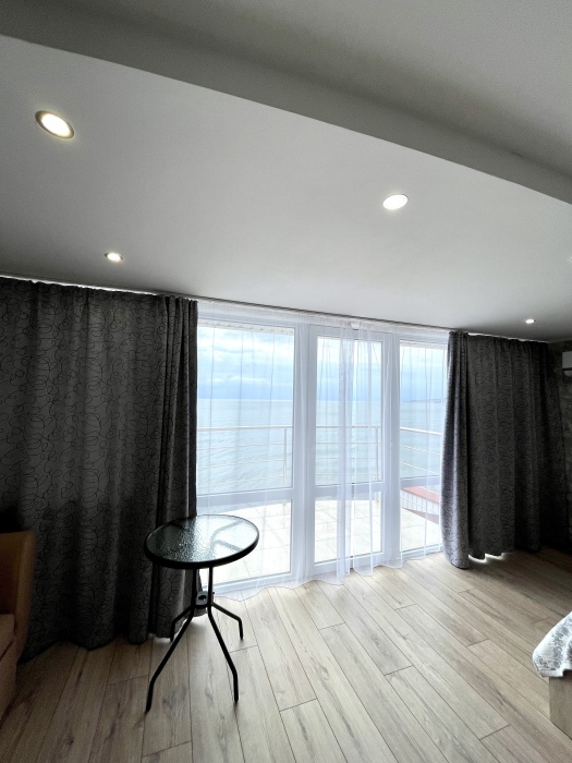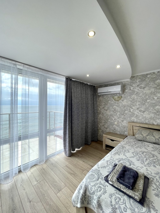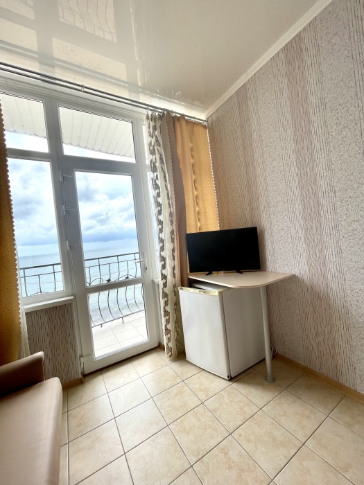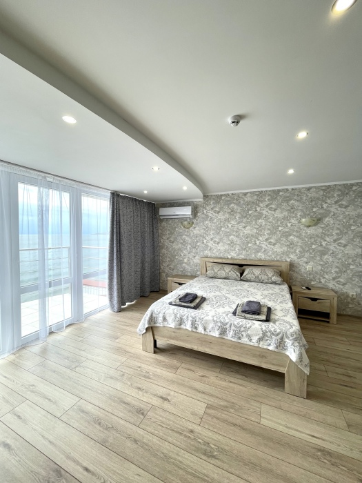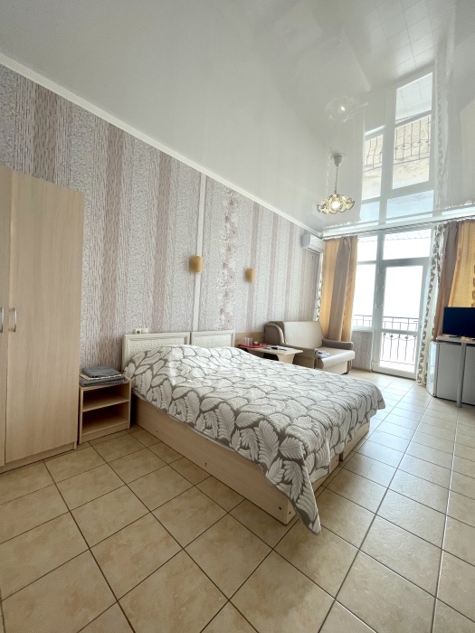 Двухместный просторный номер с видом на море оформлена в современном дизайне, приятной цветовой гамме и сочетает в себе комфорт и домашний уют.