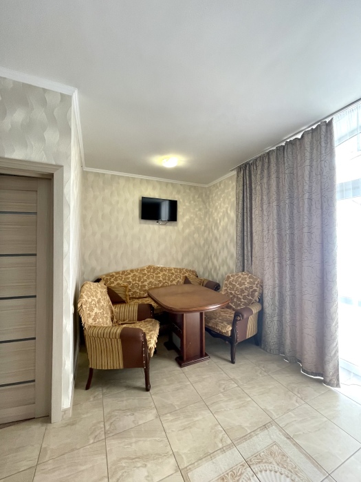 Люкс 4-местный без вида на море оформлена в современном дизайне,приятной цветовой гамме и сочетает в себе комфорт и домашний уют.