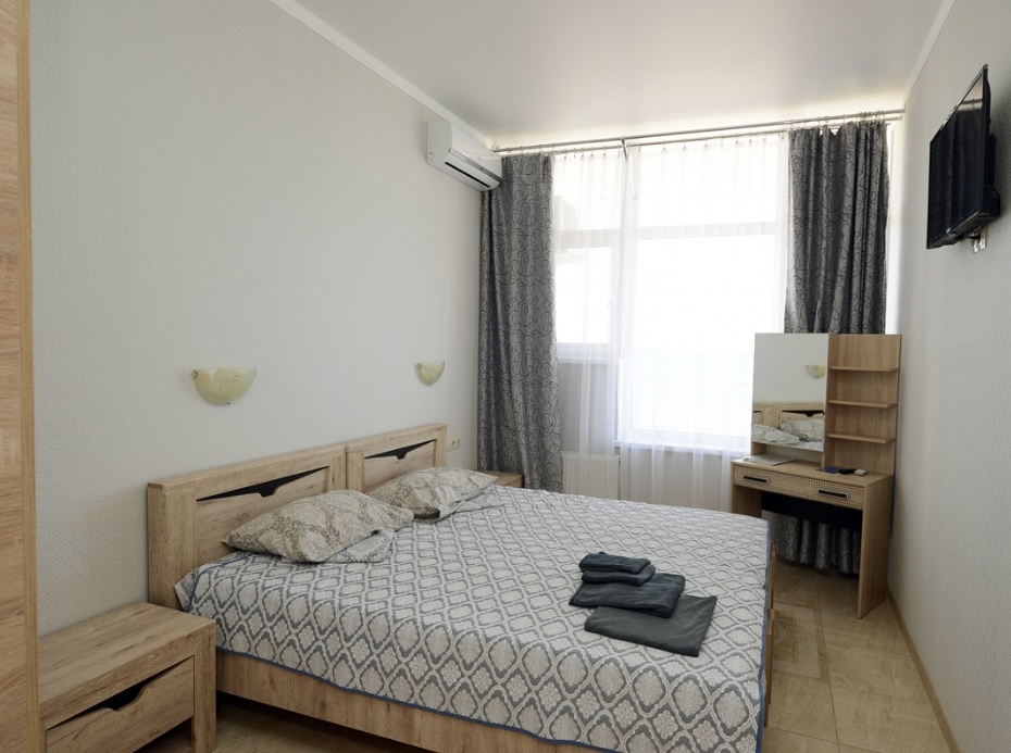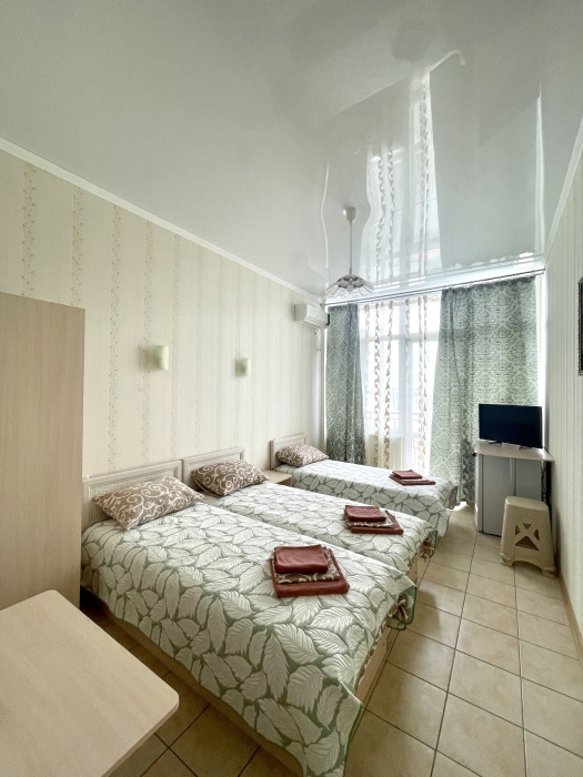 3-местный номер «Стандарт» без вида на море оформлена в современном дизайне, приятной цветовой гамме и сочетает в себе комфорт и домашний уют.