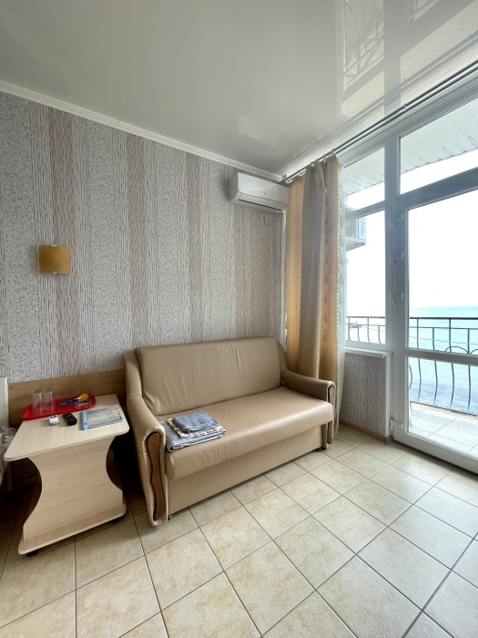 3-местный номер с видом на море оформлен в современном дизайне, приятной цветовой гамме и сочетает в себе комфорт и домашний уют.
