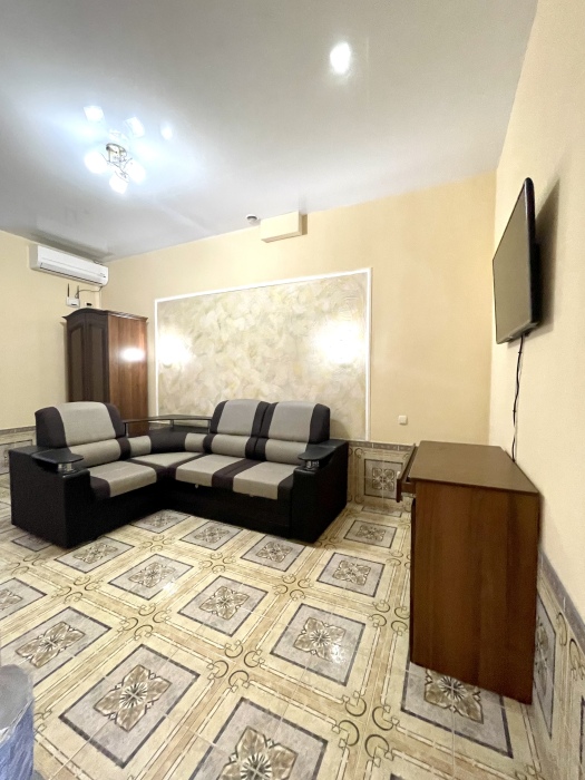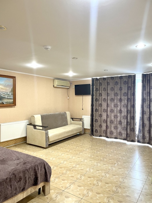 Номер удобен для семейной пары с детьми. В номере есть все для удобного отдыха: кондиционер, плазменный телевизор, холодильник, санузел с душем, фен, шкаф.
