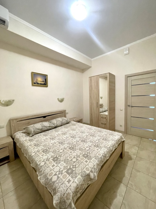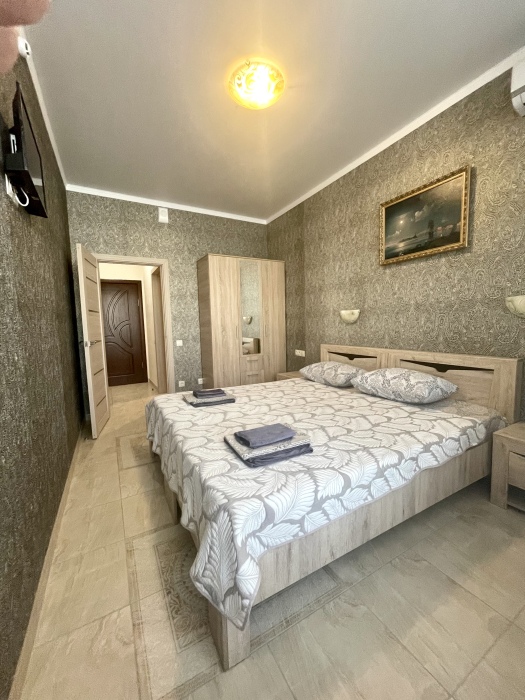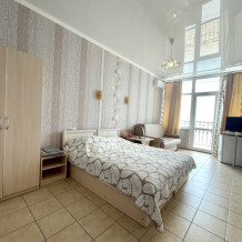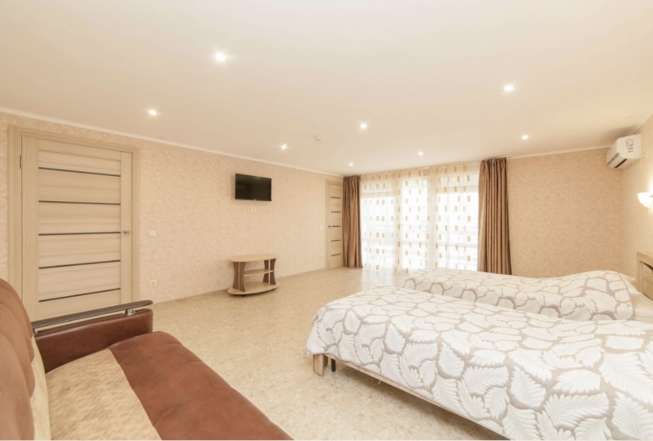 Просторный семейный номер Люкс с видом на море. Оформлен в современном дизайне, приятной цветовой гамме и сочетает в себе комфорт и домашний уют.