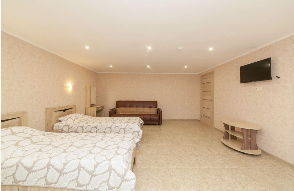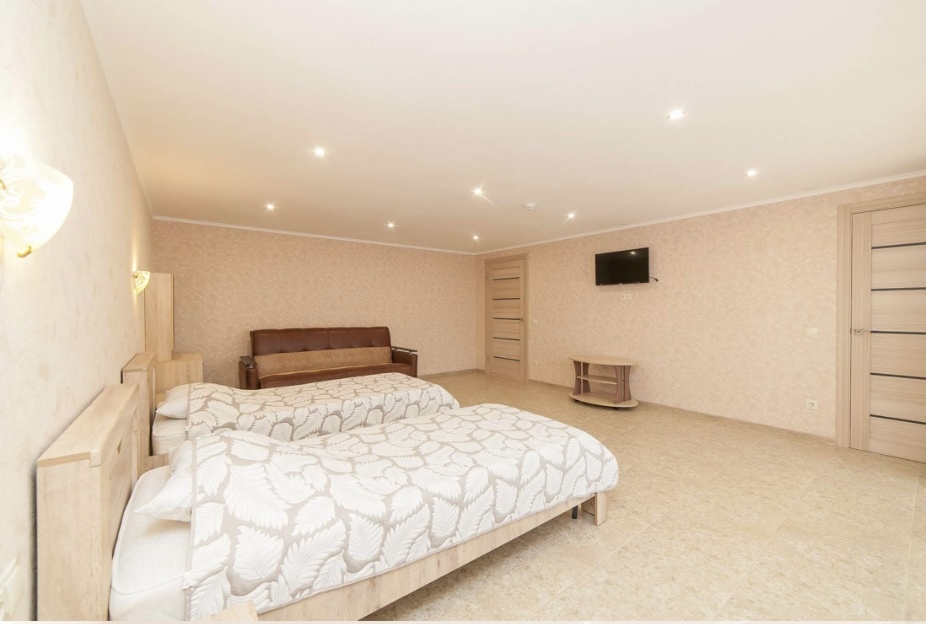Спальные места -две двуспальные кровати, два двухспальных дивана. Также есть возможность поставить дополнительные спальные места, которые оплачиваются отдельно.