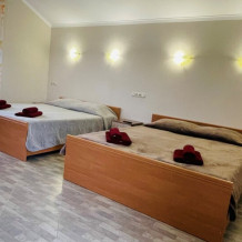 К Вашим услугам - комфортные номера, тихий семейный отдых, кафе-столовая, бассейн, беседки для отдыха и барбекю, детская площадка, красивая ухоженная территория, парковка, прачечная, отличное настроение и самое чистое море в Крыму.
