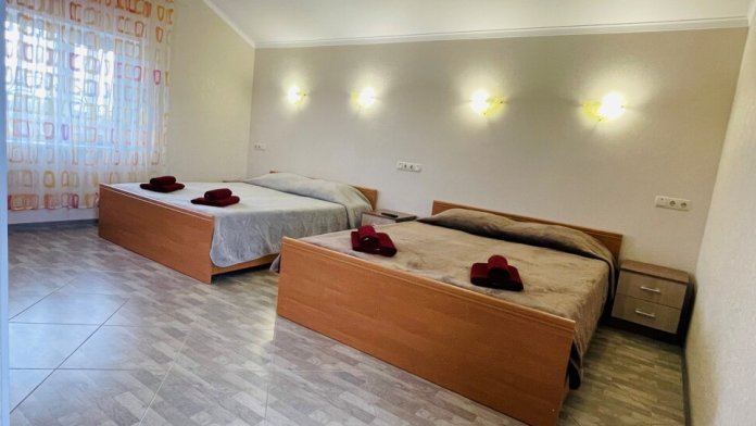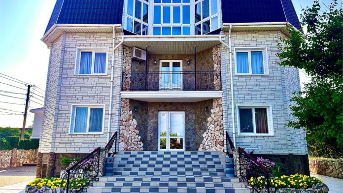 Уютный гостевой дом расположен в поселке Оленевка, на берегу Черного моря. До пляжа можно дойти всего за 10 - 15 минут.