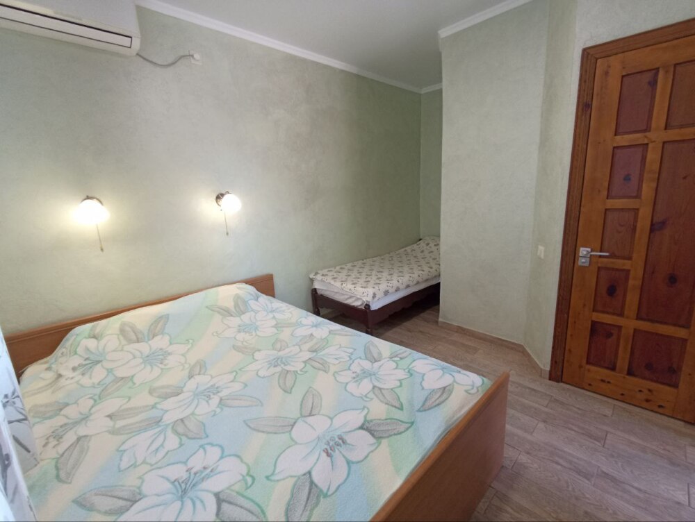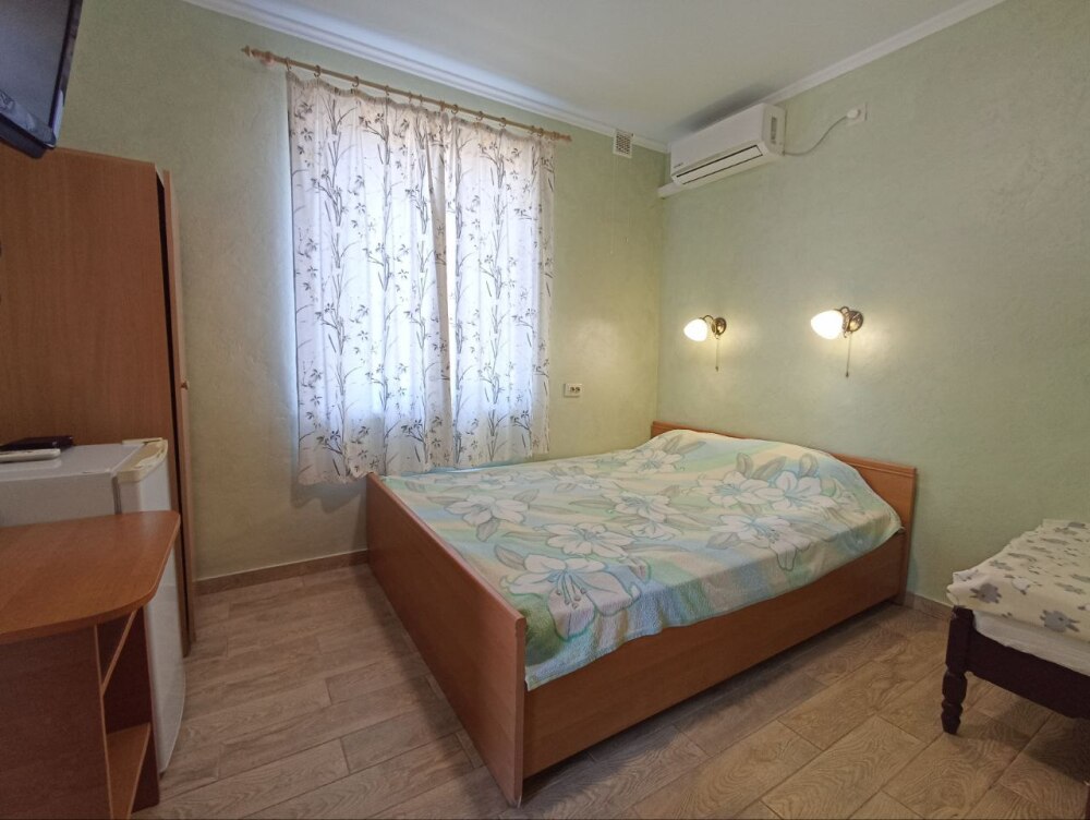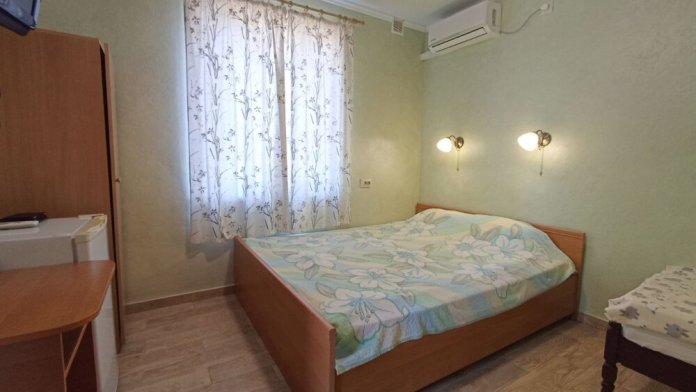 2х местный номер, с отдельным входом и своей мини террасой. В номере двуспальная и односпальная кровати, пенал, стол, холодильник, телевизор, кондиционер, wi-fi.