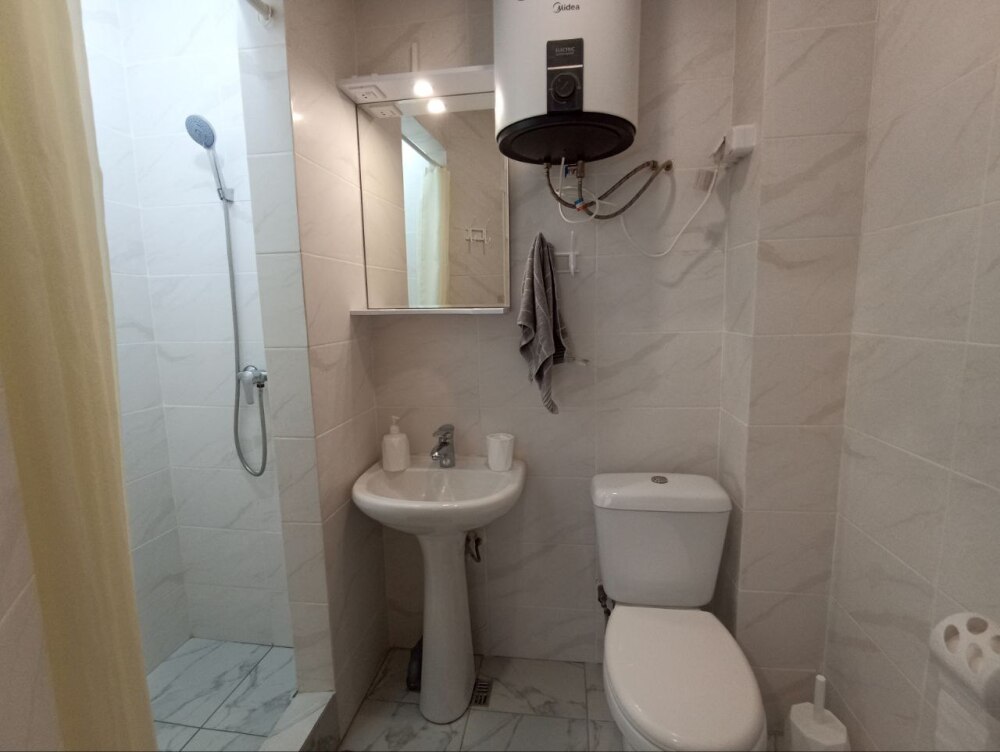 Санузел не стандартный, нет душевого поддона и шторки!