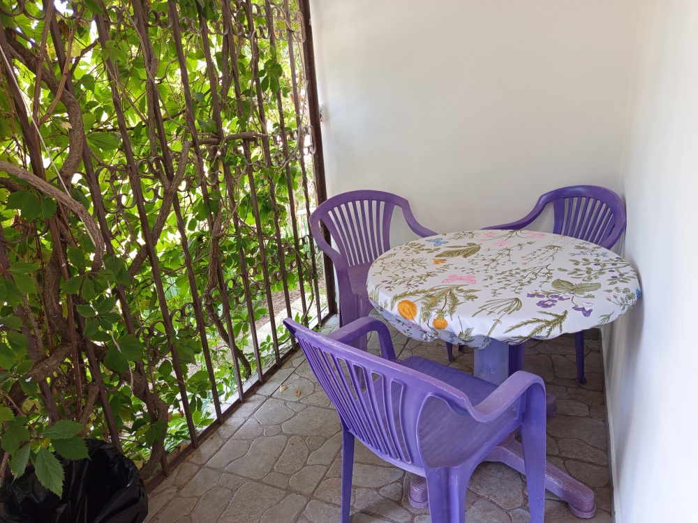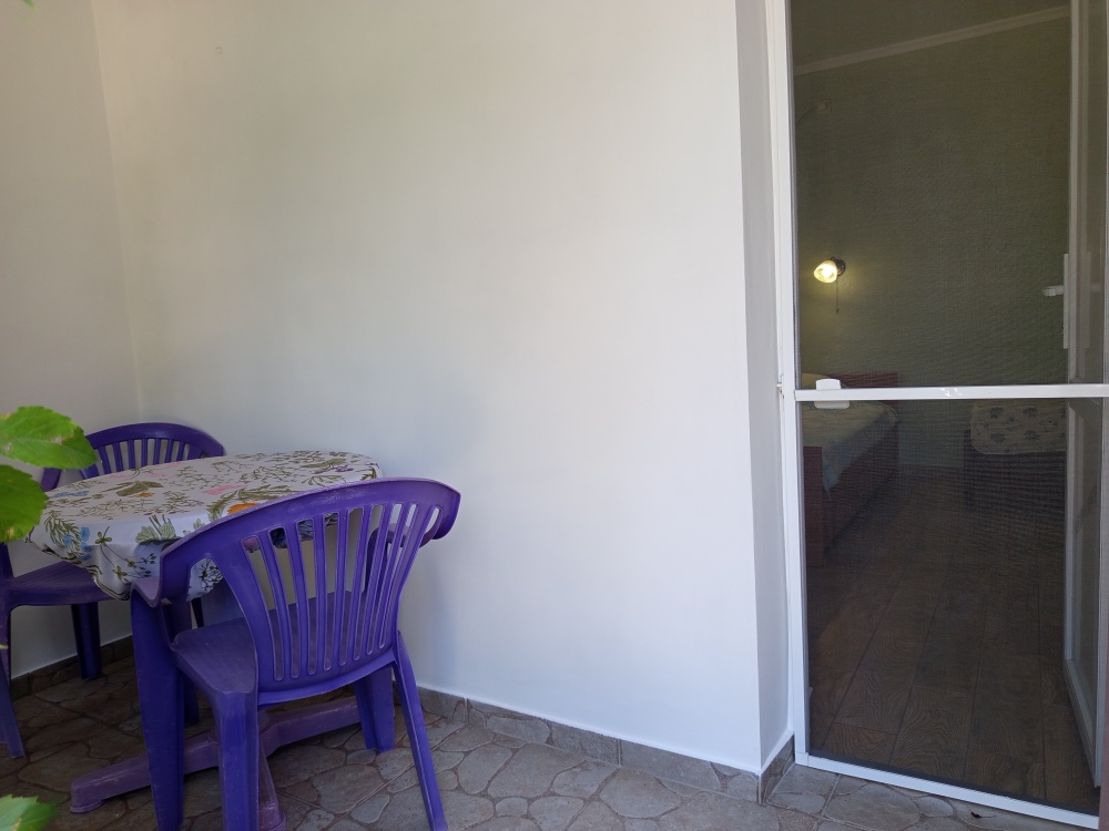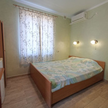3-4х местный, двухкомнатный номер с отдельным входом и своей мини террасой. Общая площадь номера 25 м², комнаты смежные, с/у с душем. В номере: двухспальная и односпальная кровати, раскладной диван, 2 пенала, 2 столика. Холодильник, телевизор, кондиционер, бойлер. Терраса: пластиковая мебель стол, 2 стула и 2 табуретки.