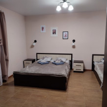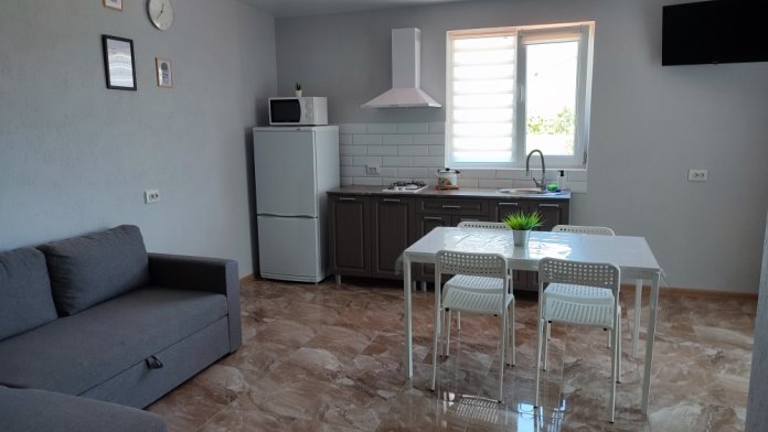 Для проживания предлагаем комфортные номера со всем необходимым. Каждый номер оборудован своей кухней (плита, холодильник, СВЧ-печь, чайник, посуда), новая мебель, ортопедические матрасы для комфортного сна (полотенца и постельное белье предоставляется), кондиционер, телевизор, бесплатный Wi-Fi на всей территории. У каждого номера свой выход на балкон оборудованный уличной мебелью.