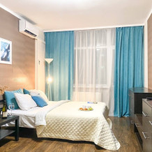 Для вашего комфорта в квартире есть все необходимое и даже большее: кровать (спальное место 160х200), кресло-кровать, евро-раскладушка, телевизор-плазма, WI-FI, кондиционер, микроволновка и кофеварка, 2х камерный холодильник, утюг, фен, стиральная машина, чай/кофе/печенье.