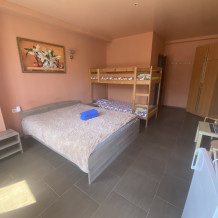 В шаговой доступности магазины, столовые, кафе, парк аттракционов, остановка общественного транспорта. В 2 минутах ходьбы от нашего гостевого дома два бассейна, три детские площадки.