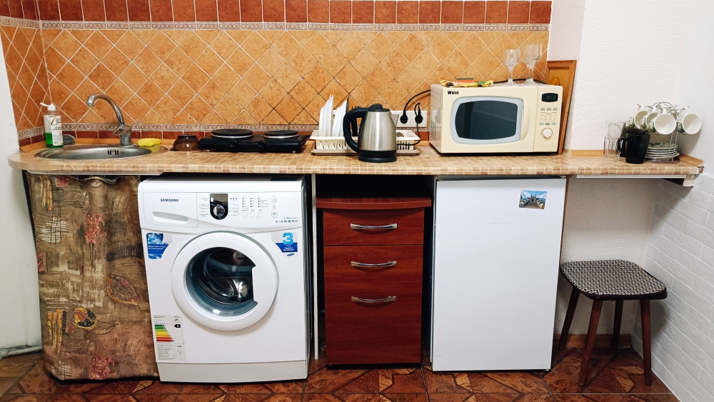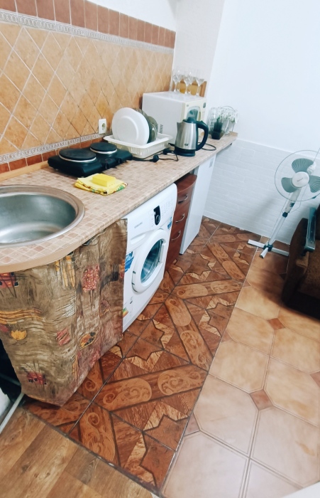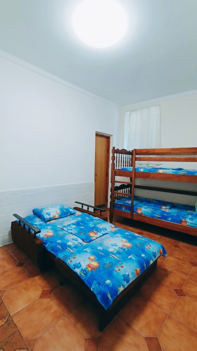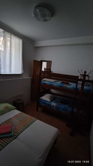 В квартире спальня, кухонный уголок, два санзула, веранда. Есть 2-этажная деревянная кровать, две 1,5-кровати и 2-спальный диван. Телевизор, микроволновка, стиральная машина, Wi-Fi. Бесплатная парковка.