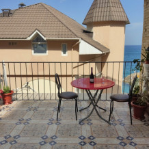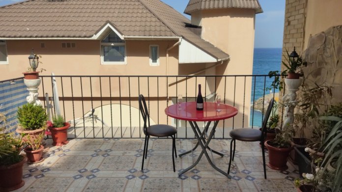 ОТКРЫТАЯ ТЕРРАСА СО СТОЛИКОМ.ДО МОРЯ-60 МЕТРОВ.ВИД НА МОРЕ МЕЖДУ ДВУМЯ ОТЕЛЯМИ.ДО 4-Х ЧЕЛОВЕК ОТ 5-И ДНЕЙ.