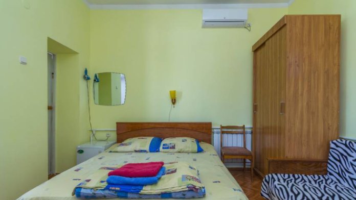 В номере одна двуспальная кровать или две односпальные.