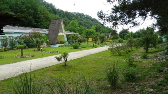 База отдыха «Золотая бухта» расположена в 5 км от курорта Пицунда. Она находится на закрытой охраняемой территории в естественном природном массиве леса в ущелье реки Ряпш. Это тихое место среди роскошных субтропических лесов. Рядом с базой расположен заповедник «Мюссер», а в Пицунде много достопримечательностей, интересных для туристов. В пешей доступности есть магазины, рынок и кафе, вечерняя дискотека. Море находится всего в 3-5 минутах ходьбы от жилых корпусов. Собственный пляж базы с песком и галькой в нескольких минутах ходьбы имеет раздевалки, солнцезащитные навесы и зонты.