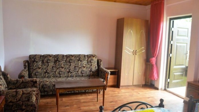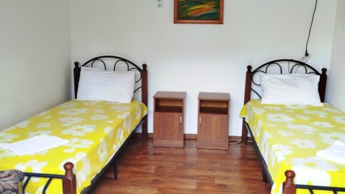 Уютная комната для двоих, можно с небольшим ребёнком в кресло кровать. Не большая преддомовая территория, где можно уединиться. Общая кухня, стиралка.