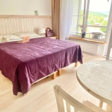 Комфортабельная студия в корпусе «К». Рассчитана на пятиместное размещение, оборудована всем необходимым для проживания - мини кухня для разогрева и приготовления пищи, удобные кровати с ортопедическими матрасами, собственный санузел с душевой, а главное красивый вид на горы.