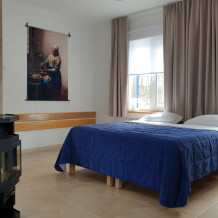 В наших домах есть все для комфортного отдыха: Wi-Fi, кондиционер тепло/холод, теплый пол в санузлах, Smart TV, холодильник, микроволновка, газовая плита, вытяжка, электрочайник, мойка на кухне с моющими принадлежностями, набор необходимой кухонной и столовой посуды, кухонные и столовые приборы, стекло. Соль, перец, оливковое масло, чай. Двуспальные кровати из натурального дерева шириной 160 см. Возможно размещение на односпальных кроватях. По запросу предоставляем детские кроватки и высокие стульчики для малышей. В студиях «Б» возможны дополнительные спальные места.