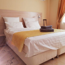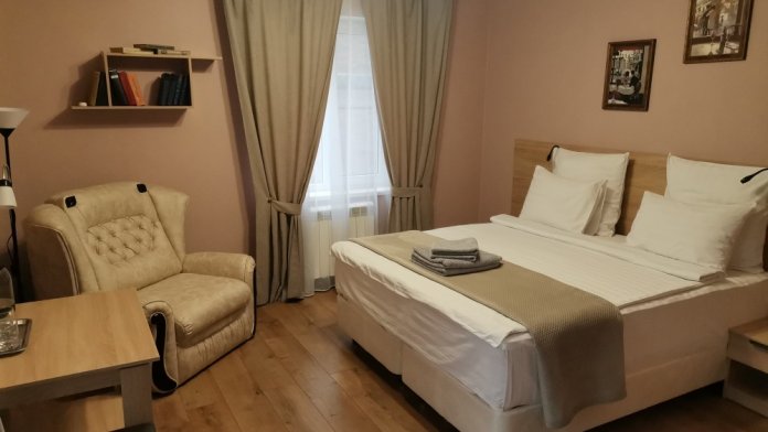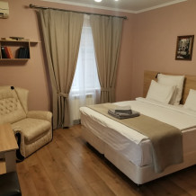 Улучшенный номер для проживания 2-х человек, имеется дополнительное спальное место, кресло кровать в разложенном состоянии 70*200, при необходимости можно разместить 3-х человек. В номере также находится индивидуальный санузел, со всем необходимым для посещения таких мест. В номере есть окно, теплые полы, в любую непогоду здесь будет тепло и уютно. TV, Wi-Fi на всей территории гостевого дома бесплатный с хорошим сигналом. Кухня на 1 этаже с выходом на террасу.