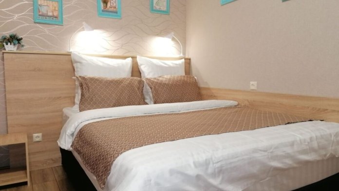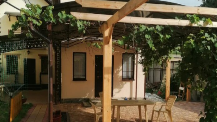 Номер студия для проживания 2 человек, имеется дополнительное спальное место, кресло-кровать в разложенном состоянии 80*200, поэтому при необходимости можно разместить до 3 человек. В номере также находится индивидуальный санузел, своя кухня со всем необходимым для готовки. В номер три окна, теплые полы, которое включаем по необходимости или по требованию отдыхающих. TV, Wi-Fi на всей территории гостевого дома бесплатный с хорошим сигналом. Выход во внутренний дворик со своей зонной отдыха.