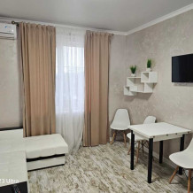 Гостям для проживания предлагаются номера-студии со всем необходимым для комфортного отдыха. В каждом номере есть кухня для самостоятельного приготовления пищи, холодильник, телевизор, Wi-Fi, кондиционер, стиральная машинка, собственный санузел.