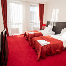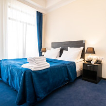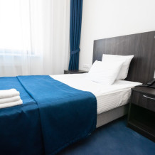 Просторные и светлые гостиничные номера оформлены со вкусом. Грамотная расстановка мебели расширяет пространство, встроенные шкафы позволяют аккуратно развесить одежду, не занимая полезную площадь помещения. Душевая и туалетная комнаты совмещены в одну. Имеется полотенцесушитель, что исключает появление сырости. Качественный ремонт, идеальная чистота, ухоженное ковровое покрытие в номерах и на этажах, – всё это делает пребывание в гостинице по-домашнему комфортным. Кондиционеры и рециркуляторы воздуха обеспечивают в номерах и прохладу летом и тепло в зимнее время. Стены выполнены из шумопоглощающих материалов, что исключает проникновение посторонних звуков.
