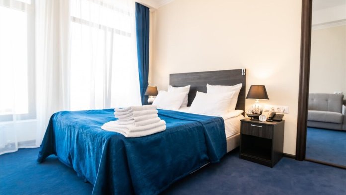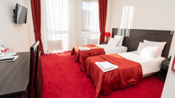 Гостиница европейского уровня, планировка дома полностью отвечает современным требованиям. Благородный стеклянный фасад здания привлекает взгляд посетителя особой изысканностью современного архитектурного стиля. Комплекс сдан в эксплуатацию в 2020 году. Сделанный со вкусом отличный ремонт, стильная свежая отделка стен и полов, превосходные эргономические параметры основных и бытовых помещений, – все эти показатели повышают преимущественные качества нашего отеля.